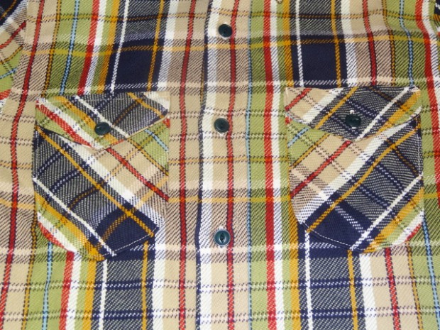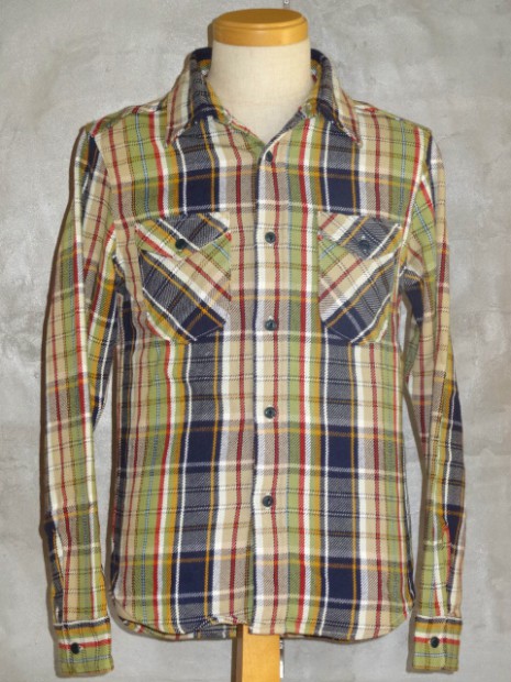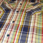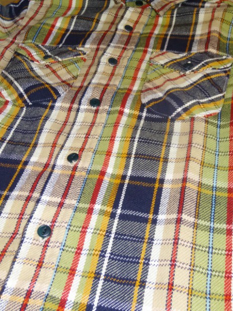 【UES】 UESのヘビーネルシャツは、厚みのある生地と、力織機で織ることで表現される風合いが大きな特徴です。タテ糸とヨコ糸の打ち込みのバランスが良く、適度に生地が動くことで着心地が良くなります。生地の風合いを是非手にとって実感してください。直接染料を使用した先染めの生地は、着込むことで少しずつ褪色していきます。微妙な色のトーンが楽しんでいただけます。