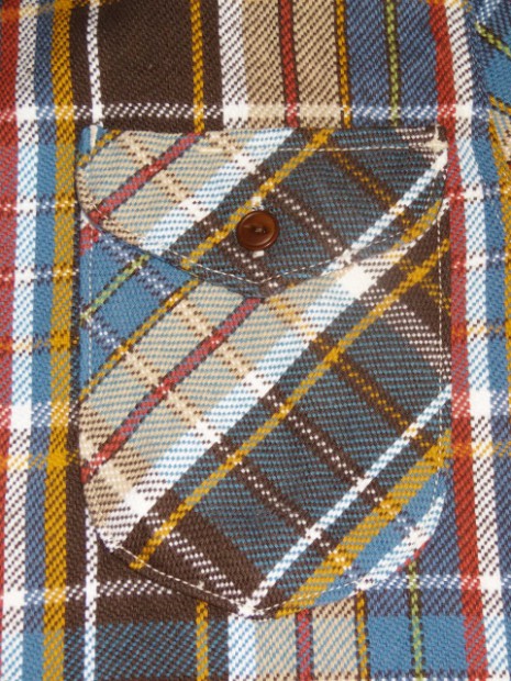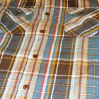 【UES】 UESのヘビーネルシャツは、厚みのある生地と、力織機で織ることで表現される風合いが大きな特徴です。タテ糸とヨコ糸の打ち込みのバランスが良く、適度に生地が動くことで着心地が良くなります。生地の風合いを是非手にとって実感してください。直接染料を使用した先染めの生地は、着込むことで少しずつ褪色していきます。微妙な色のトーンが楽しんでいただけます。