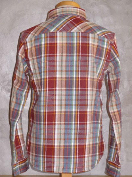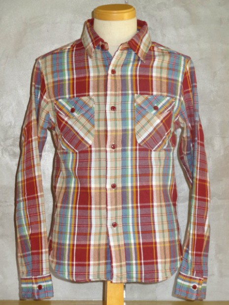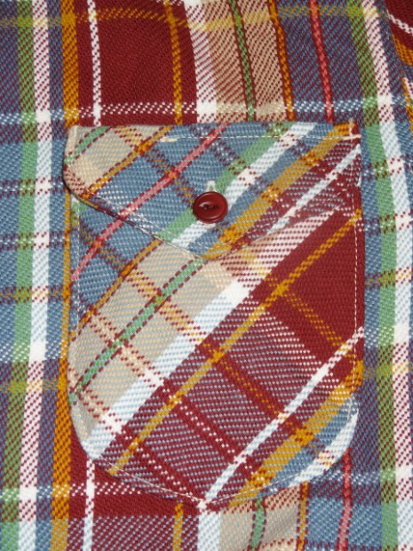 【UES】 UESのヘビーネルシャツは、厚みのある生地と、力織機で織ることで表現される風合いが大きな特徴です。タテ糸とヨコ糸の打ち込みのバランスが良く、適度に生地が動くことで着心地が良くなります。生地の風合いを是非手にとって実感してください。直接染料を使用した先染めの生地は、着込むことで少しずつ褪色していきます。微妙な色のトーンが楽しんでいただけます。