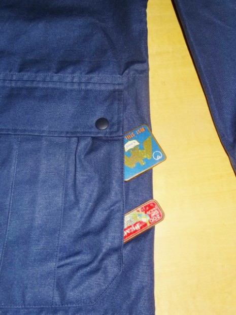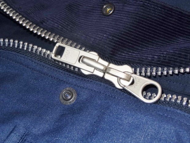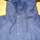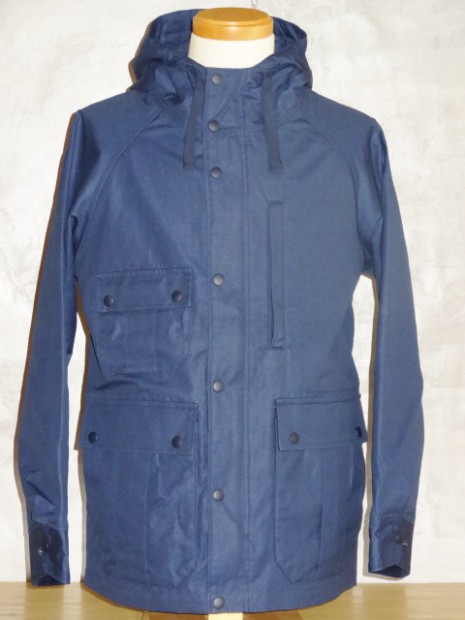 【WORKERS】 ネイビー、表生地はDeckTankerと同じコーティングキャンバス。マウンテンパーカーの企画が先にあり「厚みのある撥水性素材」を開発するためコーティングキャンバスが完成しました。コーティングの洗濯耐性は30回ほど。ベロっとはいきませんが、徐々にコーティングは薄くなっていきます。また、コーティング部分がこすれると若干白みがかった跡もつきます。パラフィンダックのように、経年変化と思い楽しんでいただければ。 ポケットはマチ+ハンドウォーマー。フラップ裏、前立て裏といった部分にはコーデュロイを使い適度な厚みを持たせています。あごのファスナーが当たる部分はチンガード付。ファスナーはあえてYKKの大型ダブルファスナーで使い勝手を重視。実際、自分で今も13FWで作ったマウンテンパーカーを良く着ます。ジャケットを着た上に、また厚手のセーターの上。裏地は今回も身頃がコットン100/袖裏が綿ポリエステルと薄手の物を使っているので春先まで着用可能。裏地を薄くしてシェルとしての機能に徹しています。