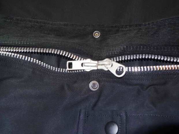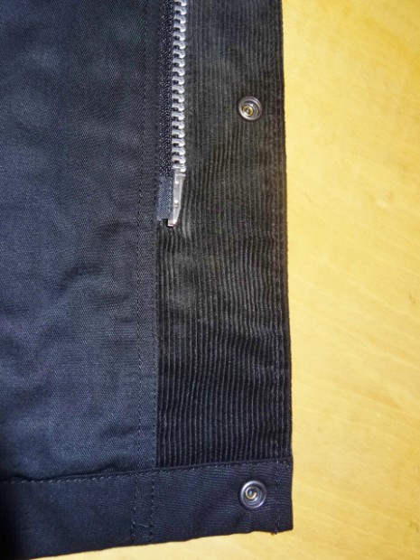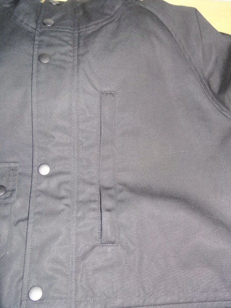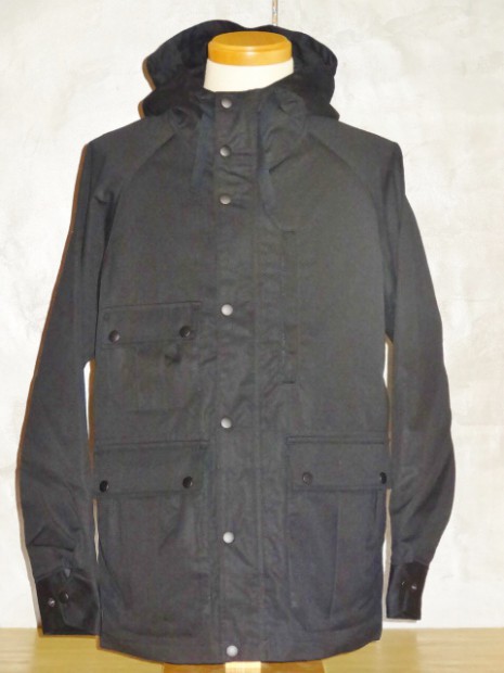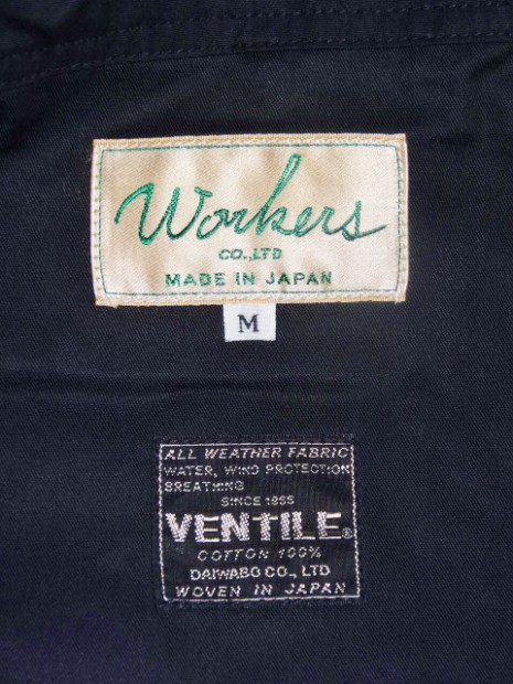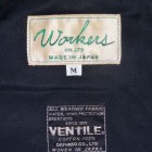 【WORKERS】 ブラックは平織のベンタイル。綿100%にしては薄く、軽いのがまず第一の特徴。 40番糸を双糸、二本より合わせて20番相当に。その後、高密度に平織。さらに、Coated Canvasとは違う、浸透するタイプの撥水加工をかけています。洗濯により徐々に撥水性は落ちていきます。また、大粒の雨には強い反面、霧雨系には弱いのが実際に着てみてわかりました。 ポケットはマチ+ハンドウォーマー。フラップ裏、前立て裏といった部分にはコーデュロイを使い適度な厚みを持たせています。あごのファスナーが当たる部分はチンガード付。ファスナーはあえてYKKの大型ダブルファスナーで使い勝手を重視。実際、自分で今も13FWで作ったマウンテンパーカーを良く着ます。ジャケットを着た上に、また厚手のセーターの上。裏地は今回も身頃がコットン100/袖裏が綿ポリエステルと薄手の物を使っているので春先まで着用可能。裏地を薄くしてシェルとしての機能に徹しています。
