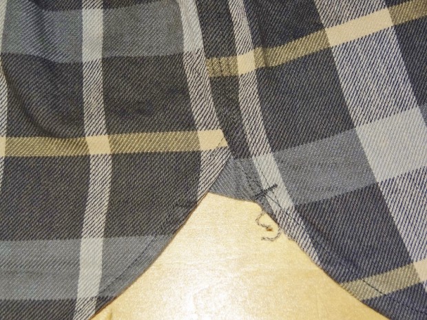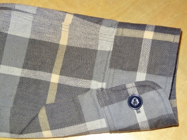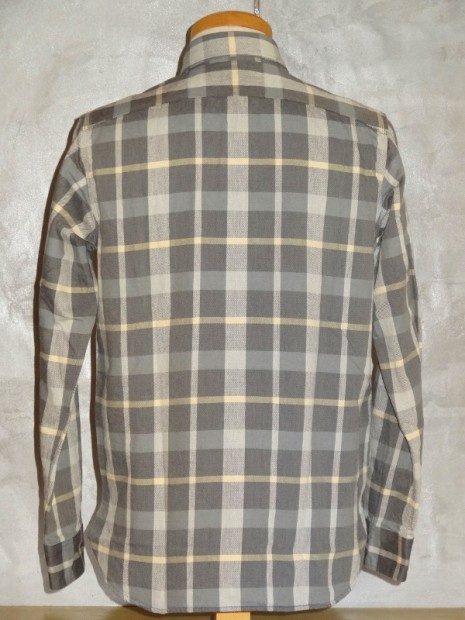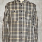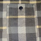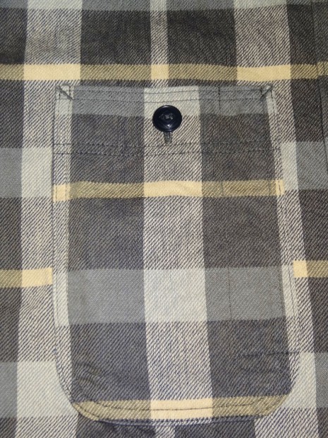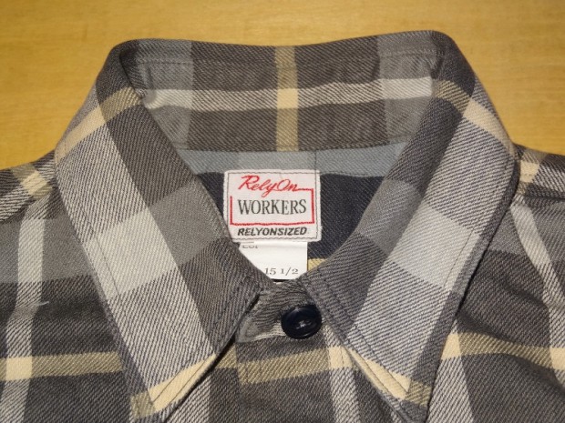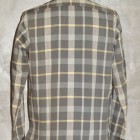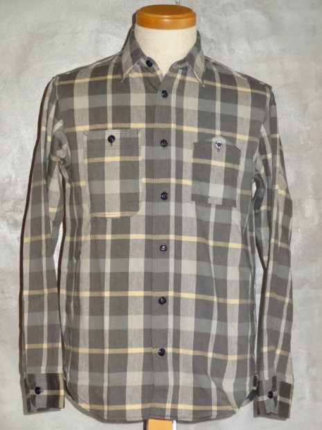 【WORKERS】 まずはじめに素材ありきのネルシャツ。毎シーズン、秋冬には地厚で手触りの良いネルシャツは欠かせません。ただ、年と共にレッド・ブルー・グリーンといった濃い色のネルが少し着づらくなってきました。そこで、グレー、ブルーグレー、ブラウンといった落ち着いた色を中心に使ったネルを作ってもらいました。当初、自分で指示したのはグレー・ブルーグレーだけだったのですが、さすが生地屋さん。同じピッチでブラウン系も見事な柄を作ってくれました。 ネルといっても起毛させていないので、厳密に言えば「綾織(ツイル)」ですが、ヨコ糸に10番という太めの糸を使うことでふっくら・地厚になっています。また、色糸は硫化で染めているので洗いこむごとに色が落ちていくのも特徴。こうして出来上がった生地を見ると、イメージするのが40-50年代ごろの地味なネル。古着好きな方ならわかっていただけると思うのですが、60-70年代の派手目かつもっと糸が太いヘビーネルとは違う、もう少し古い年代の糸が細く洗いこむと色がぼけていくあれです。そこで、形はクラシックなワークシャツのそれをあてはめました。仕様もネルでもあえてトリプルステッチ。左胸ポケットには刻印入りのメタルボタン。とても豪華なネルシャツになっています。 OW済の製品をお送りいたします。