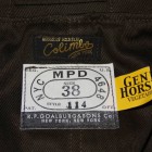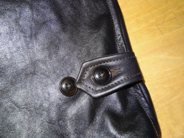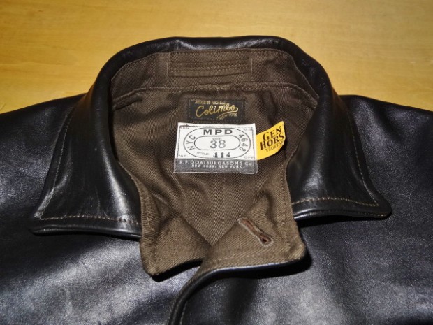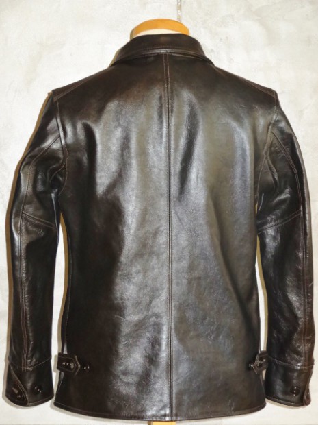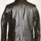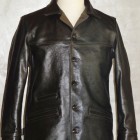 【COLIMBO】 黎明期のレザーワークコートを再現しました。1920年代のスタンダードなフォーマットとして、短めのハーフコート丈、ボタンフロント、レギュラーカラーや見返しの無いライニング突き合わせの前身頃を踏襲しています。最高級ベジタブル・タンニング ホースハイドを使用していますので、着込んだ際の袖や襟に刻まれていく特有の細かいシワは特筆すべき物があります。