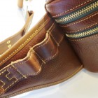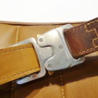 【COLIMBO】 ヒップバッグとしてご利用できるフィールド・サブバッグです。必要十分な容量のメインルームの他、小物収納用のアウターポケットを2ヶ所備えています。本体はトスカーナ産のカウハイドでナチュラルなシボ感と発色の良さは特筆ものです。メタルパーツにデッドストックのSTUBI社製のAERO-Grade(パラシュートハーネス等対応)アルミバックルを使用。ベルト部分の取り付けステッチはヒンソン独自のH型ステッチによって補強されています。 数量限定生産品