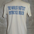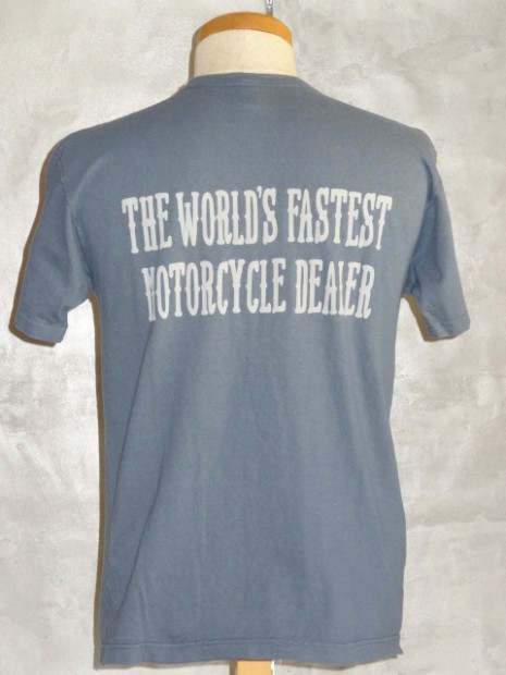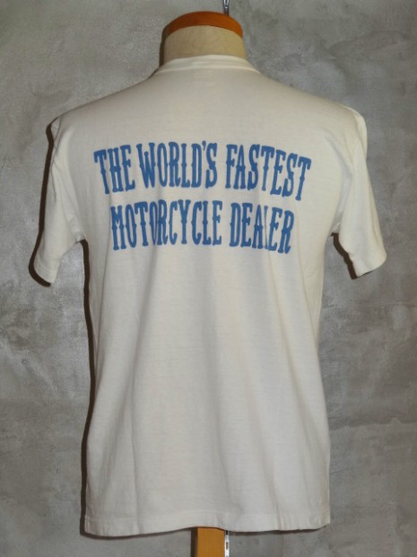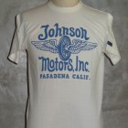 【TOYS McCOY】 レーシングチューンやパーツの開発で、常にアメリカのレースシーンをリードしてきたディーラー、ジョンソン・モータースのスローガンを掲げたTシャツ。モーターサイクリストを象徴する、フライングホイールが、絶対的な存在感を放ちます。