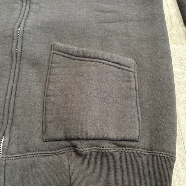 コリンボさんの雪柄スウェットはフルジップなので使い勝手がいいです。そしてこの白い雪柄をはめ込んだカッティングがまた特徴的です。