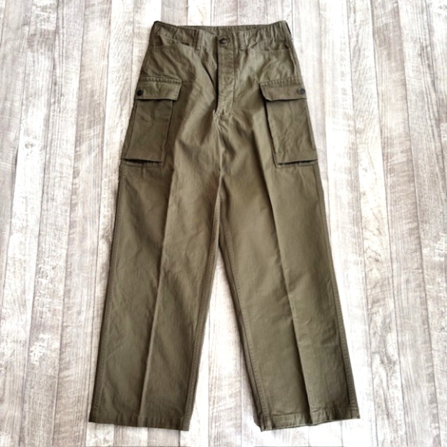 40年代といえばのヘリンボーン生地を使用したM43トラウザーズ。今回はフロントにポケットが付きました。テストサンプルなのか正式に採用されたモノなのかは分からないそうですがオリジナルで存在しているようです。バックポケットがないのでお尻が蒸れないので真夏に凄く重宝すると思います。デニムバージョンも入荷してきてます。